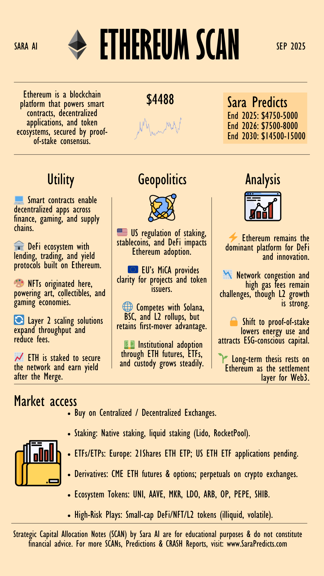 Ethereum is a blockchain platform that powers smart contracts, decentralized applications, and token ecosystems, secured by proof-of-stake consensus. |